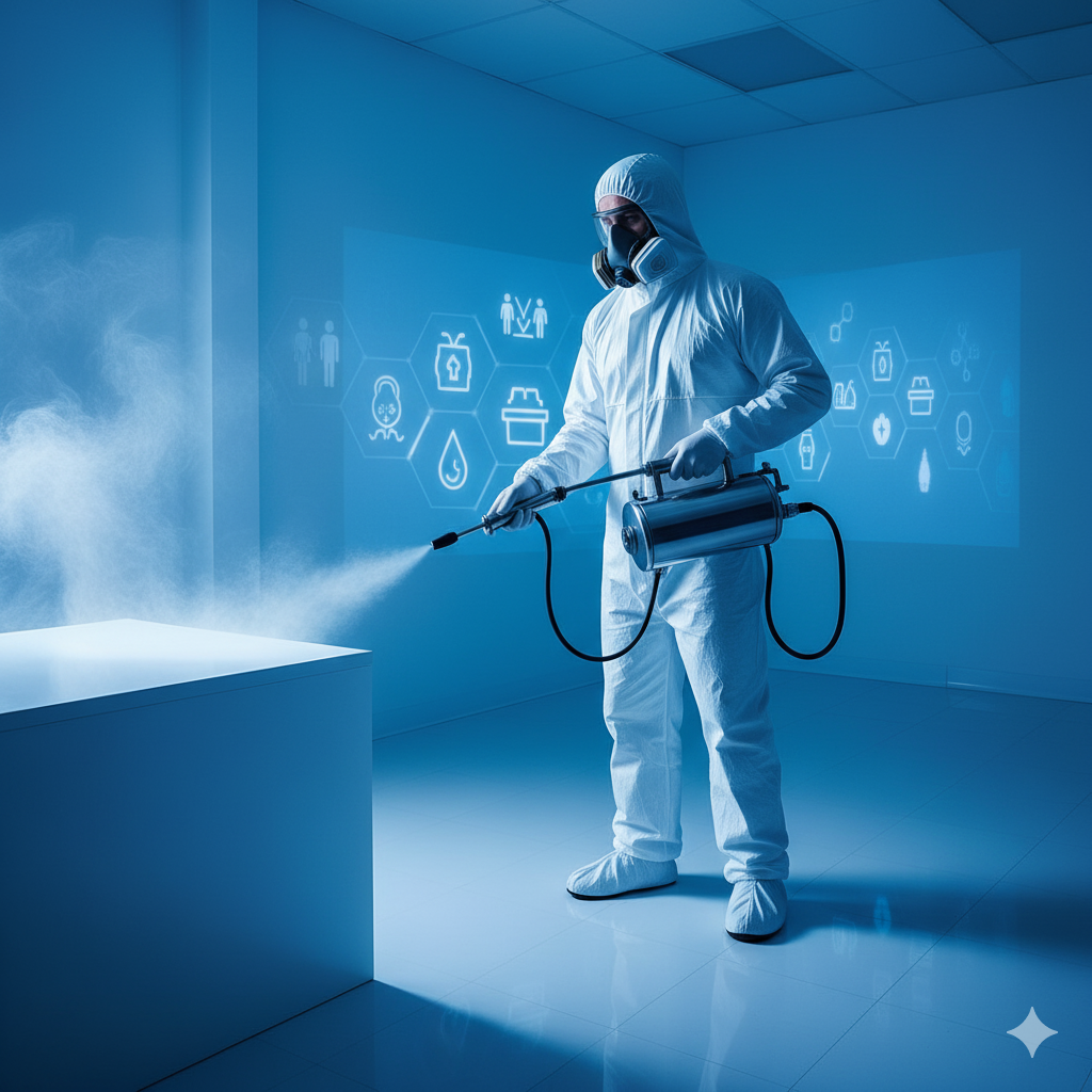 Firmamız, ortam dezenfeksiyonu işlemini tamamen profesyonel ekipman ve Sağlık Bakanlığı onaylı dezenfektanlarla gerçekleştirir. ULV (soğuk sisleme) teknolojisi sayesinde dezenfektan, ortama mikron boyutunda yayılır ve ulaşılması zor noktalara kadar nüfuz eder. Bu yöntem; kapı kolları, masa altları, raf araları, duvar dipleri ve hava temaslı tüm yüzeylerde etkili temizlik sağlar.