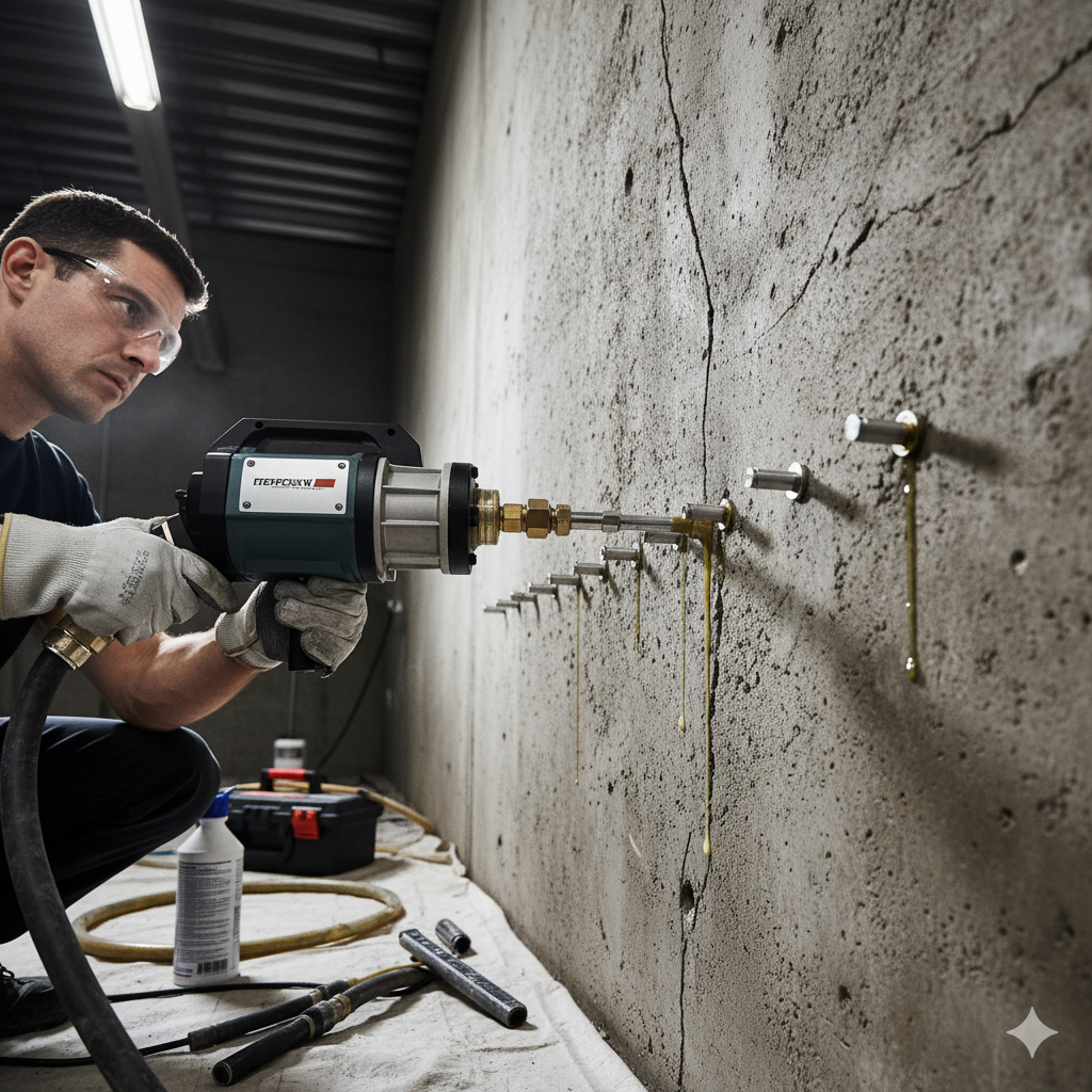 Uygulama süreci, bölgenin detaylı tespiti ile başlar. Çatlakların derinliği, suyun geldiği noktalar, basınç seviyesi ve beton yapısı analiz edilir. Gerekli noktalar özel matkap uçlarıyla delinir ve yüksek basınçlı enjeksiyon pompaları kullanılarak poliüretan reçine doğrudan çatlak içine gönderilir. Reçine saniyeler içinde genişleyerek beton içine yayılır, boşlukları doldurur ve suyun ilerlemesini tamamen keser.