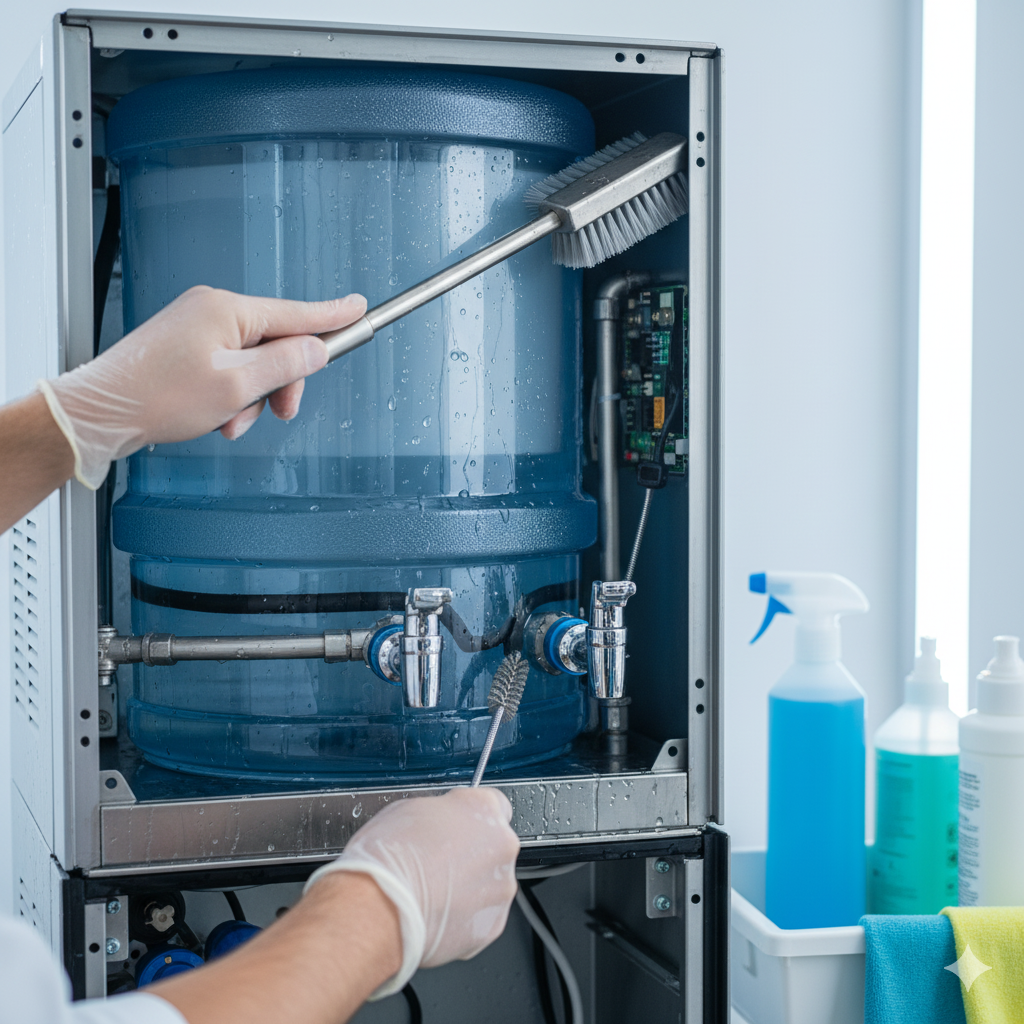 Sebilin içinde oluşan kireç tabakaları özel çözücülerle giderilir, tortu ve bakteri oluşumu tamamen temizlenir. Musluk uçlarında biriken mikrobiyal birikintiler özel fırçalarla çıkarılır ve cihazın su yolu tamamen açılır. İşlem sonunda sebil durulanır, test edilir ve güvenli, temiz ve kokusuz su verecek şekilde yeniden çalıştırılır.